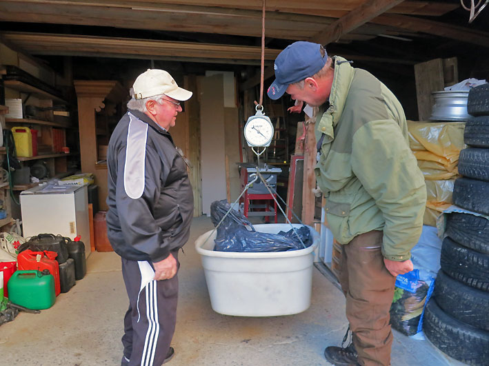 Stor pågang for veiing hos Edvard etter første jaktdagen i 2014. Foto: Arne Nyaas